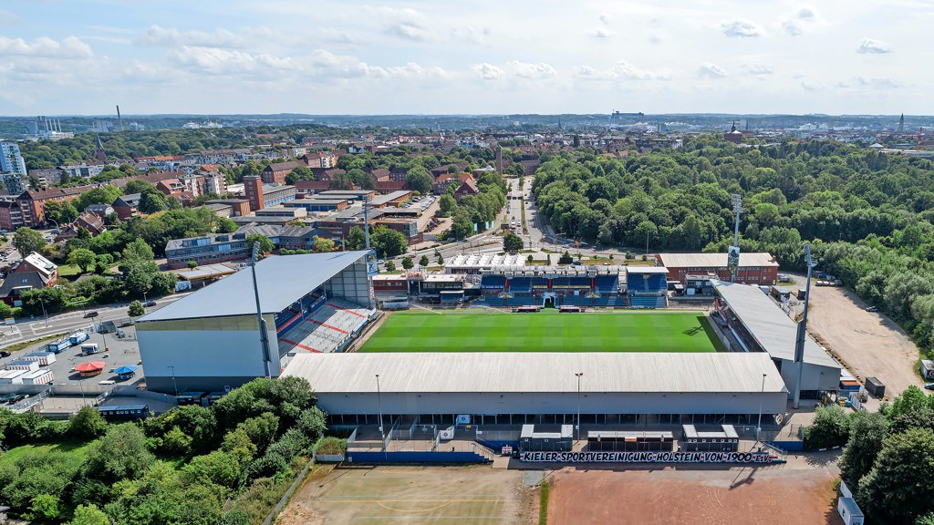 A Holstein-Stadion a Holstein Kiel labdarúgócsapat otthona, egy közepes méretű, modern, de hagyományokkal teli stadion, melyet 1911-ben nyitottak meg, és az évek során többször átalakítottak, legutóbb 2019-ben, hogy megfeleljen a Bundesliga követelményeinek; befogadóképessége körülbelül 15.034 néző, elsősorban állóhelyekkel és modern fedett lelátókkal, amely mélyen átadja a szurkolói élményt.